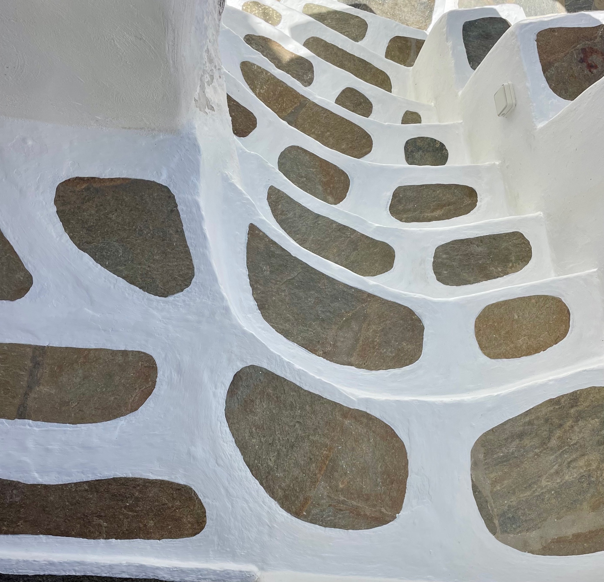 Telling the Artists House story, it is obvious that the construction materials used are primarily sourced from its former ruins or the island. For instance the giant granite stone used for the kitchen worktop once has been part of an ancient wine press.